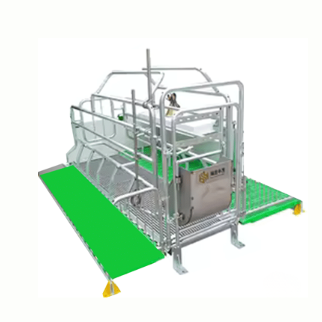 Includes piglet water drinker, piglet feeder, stainless steel sow feeder, 8 slats, 1 iron sow slat, 4 fiber beams, 8 holders, a 175W heating lamp with cover, and a sow water nipple with stainless steel holder. Dimensions: 72 inches wide, 96 inches high.